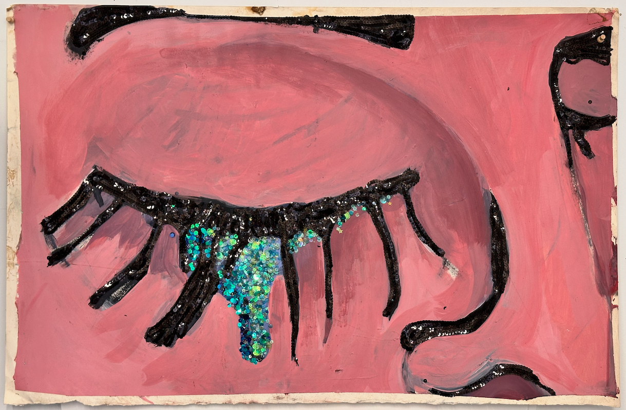 Sequins on acrylic painted paper